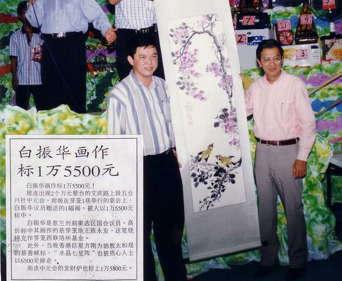 很幸运地,到目前为止我的绘画作品已为新加坡贫苦人家、各慈善团体和我区内民众俱乐部共筹得美金2佰多万元!可以这么说,我巳经把艺术化为力量,而我的绘画也和诗歌一样,都充满着"情和爱",它代表着我那"感性"的一面。