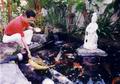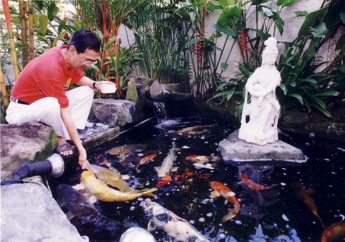 日本锦鲤天性温顺,又知人性,很惹人喜欢;其身体色泽鲜明又十分艳丽。在水中成群游来游去,常构成一幅美丽的鱼水情,是我作画的最好题材,也是我修身养性的爱好之一。
